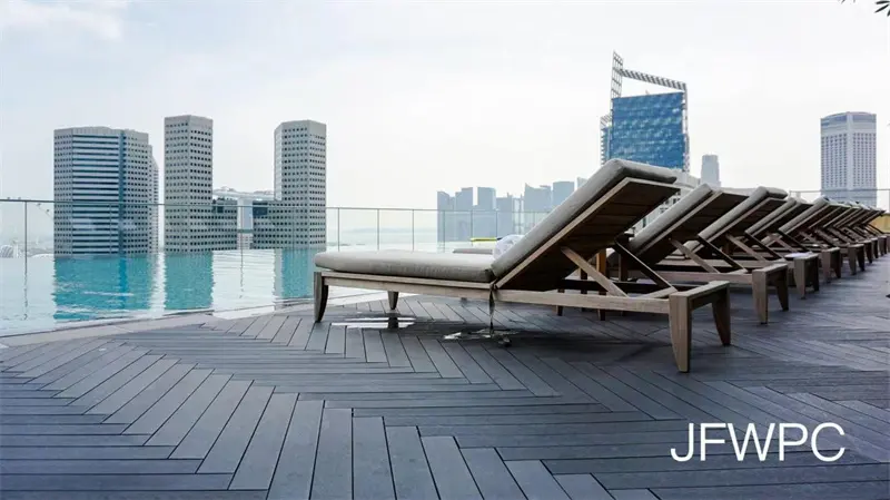 新加坡的氣候濕熱多雨及高密度人居環境下,甲板材料的選擇不僅關乎景觀美觀,更直接影響安全性能與長期使用成本。聚鋒WPC產品有其多維度優勢,為當地泳池邊、露臺提供理想方案,為現代建筑注入實用與美學兼具的戶外體驗。