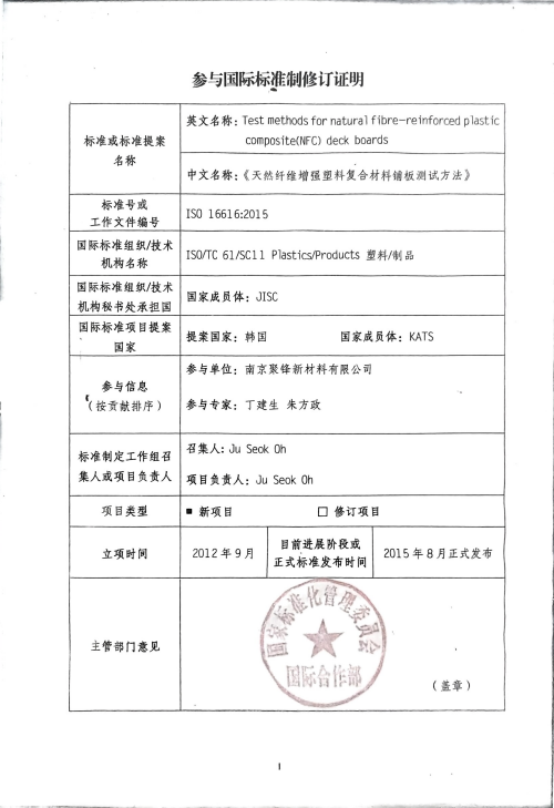 聚鋒參與國際標準(制)修訂